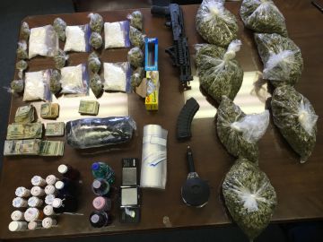 MCSENT seized five pistols, one AK-47 assault rifle, one sawed off shotgun, 9 pounds of high-grade marijuana, 6,000 Alprazolam (Xanax) tablets, 2 liters of codeine syrup, 6 ounces of crystal methamphetamine, 1/2 ounce of cocaine, 1 gram of Heroin, $18,000 cash, a Chevy Caprice, and a Dodge Durango.