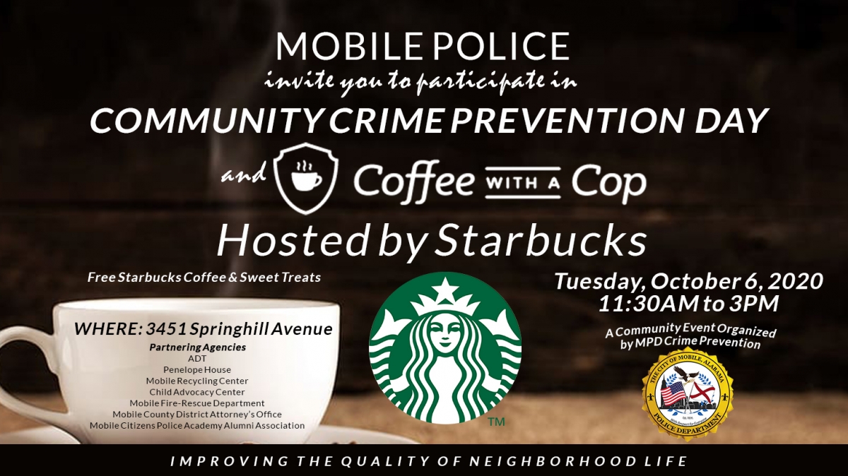 With October designated as National Crime Prevention Month, the Mobile Police Department Crime Prevention Unit is inviting the public to participate in its Community Crime Prevention Day on Tuesday, October 6, 2020.