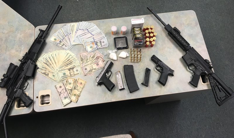 Two ounces of cocaine were seized. Officers also seized two handguns, one of which was stolen, an AR-15 assault rifle, AK-47 style semi-automatic shotgun, over $11,000 cash, and a Chevy Tahoe.