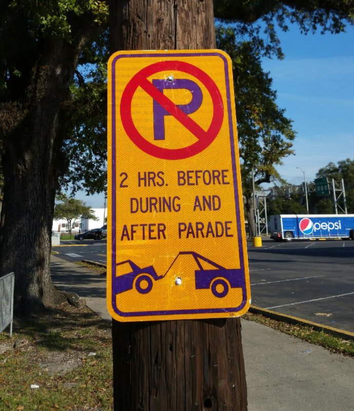 With 300 vehicles towed last year during Mardi Gras, the Mobile Police Department is reminding drivers of the meaning behind the gold and purple signs. The gold and purple signs are up in the downtown area to show exactly where parking is not allowed two hours before, during and after a parade. To avoid paying a $125 to retrieve a towed vehicle, please pay attention to the no parking signs.