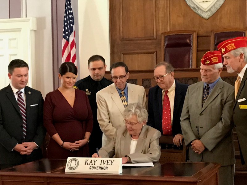 Sergeant Joe Cotner’s investigation into the Saving Youth Foundation resulted in the Alabama Legislature passing Act 17-374. Cotner, who works for the Mobile Police Department Child Advocacy Center, attended the ceremonial signing of the act in Montgomery today, June 29, with Governor Kay Ivey.